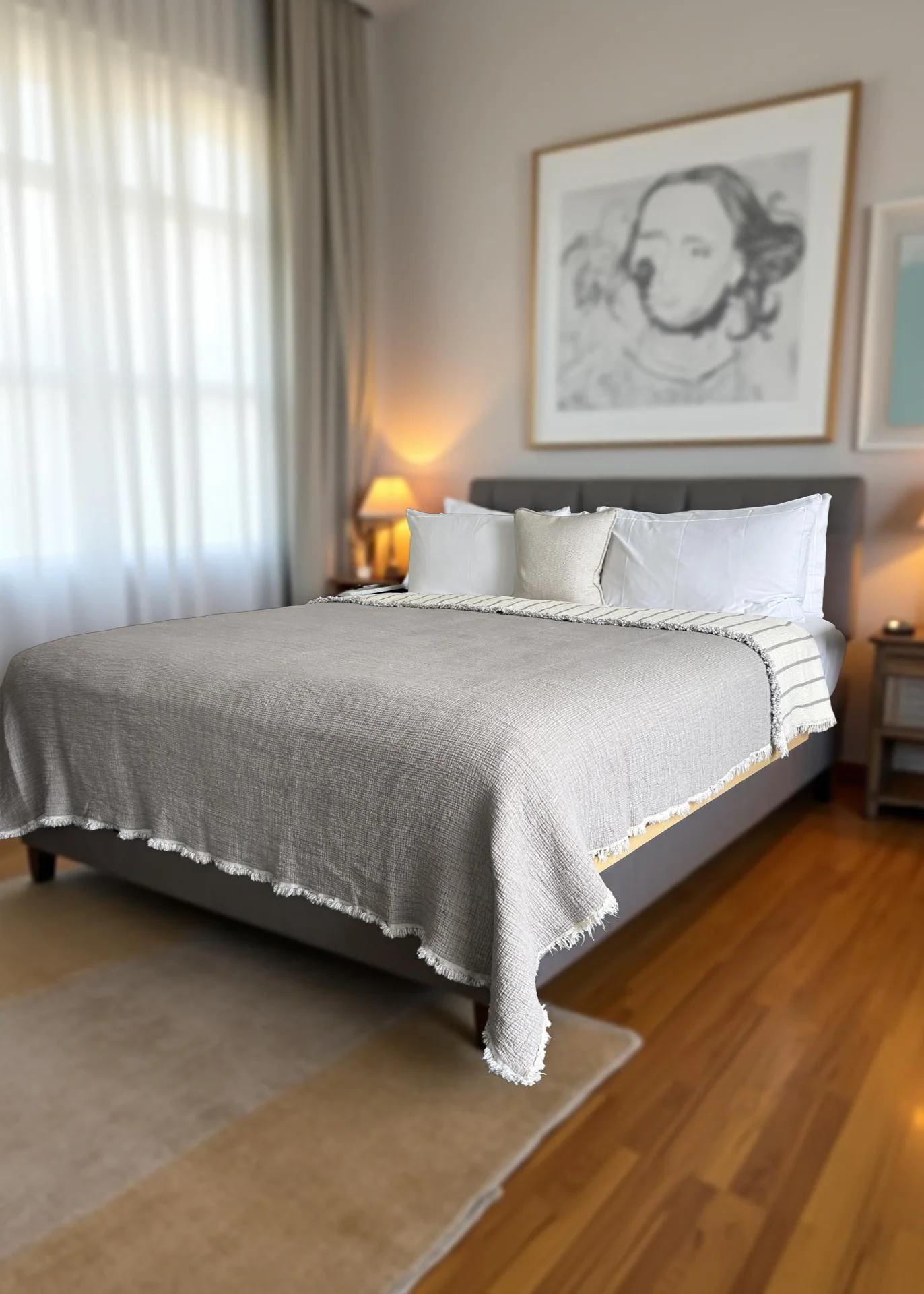 Bathrobes and throws, both made from 100% cotton, are handwoven on traditional looms.